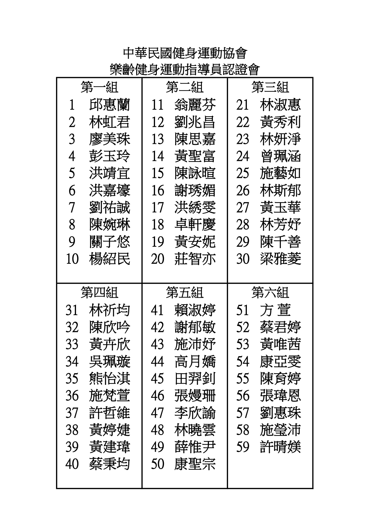 樂齡健身運動研習暨樂齡健身運動指導員認證,60人