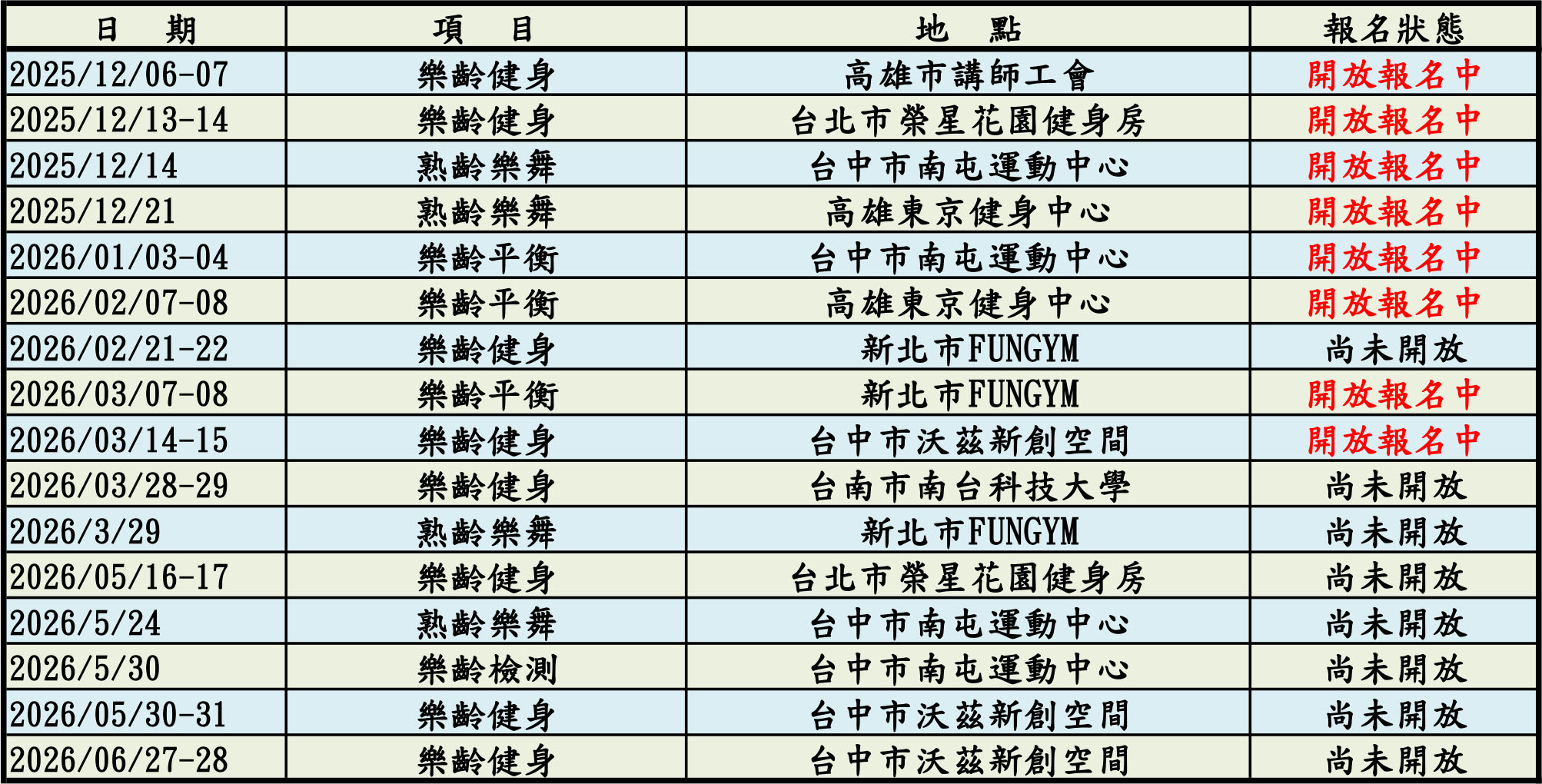 2.活動表定時間如有異動,以網路報名系統公告為準。